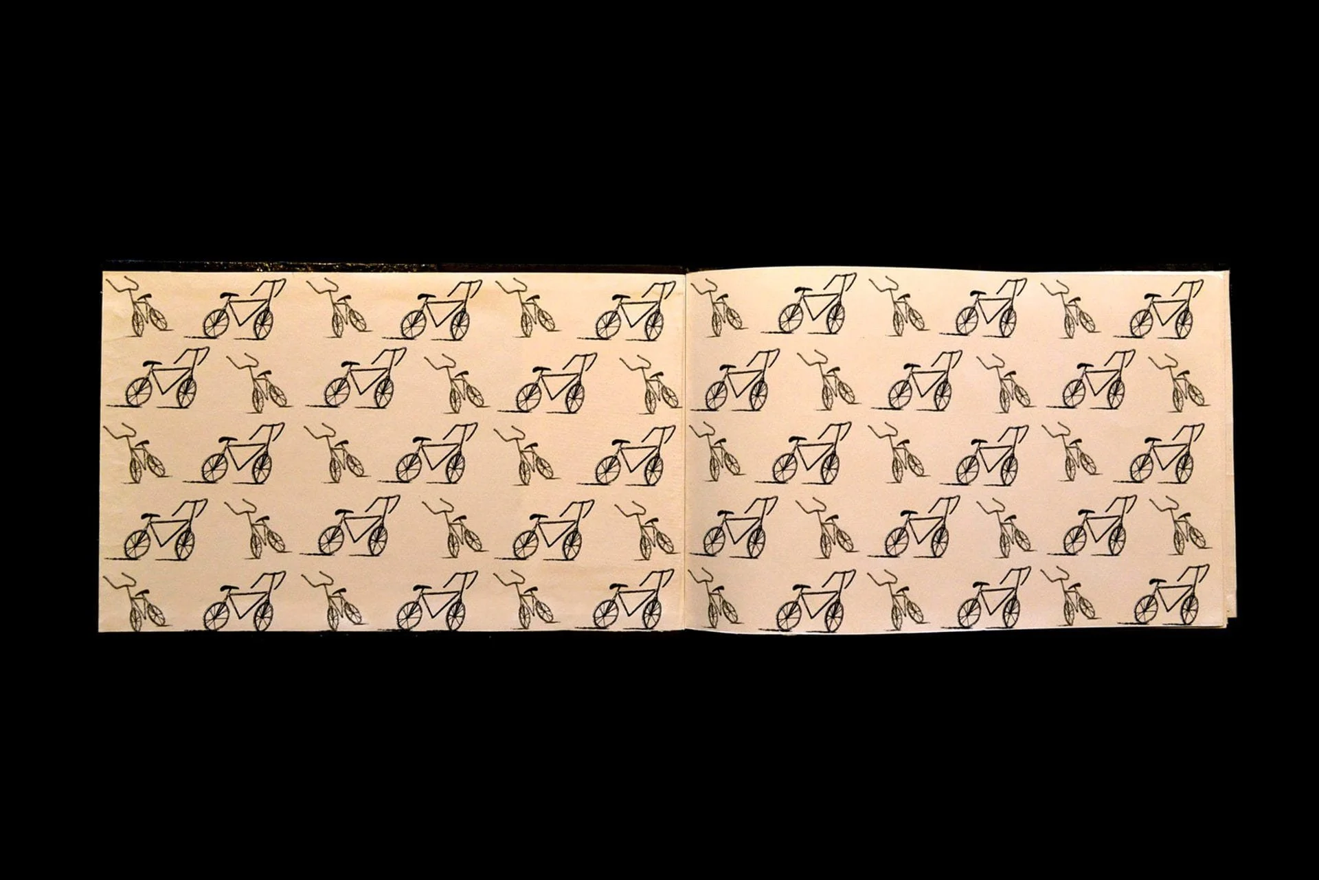 Green Thai alligator patterned textured paper and moss green goat skin, distressed and painted, comprise the back and front covers. Endpapers were designed by the binder, created by Chris Miller, and printed on Cougar text.